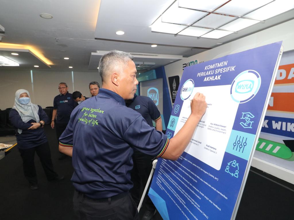 Tepatnya pada hari Selasa, 27 September 2022 telah dilaksanakan acara Sosialisasi dan Komitmen Perilaku Spesifik AKHLAK. Kegiatan ini dihadiri oleh seluruh Direksi WIKA, Direksi Anak Perusahan WIKA, Kepala Divisi, General Manager dan Manager Human Capital.Adapun dengan terselenggaranya kegiatan ini, Values AKHLAK mampu dimaknai dan diimplementasikan oleh seluruh pegawai WIKA sebagai values dalam mencapai tujuan Perusahaan.